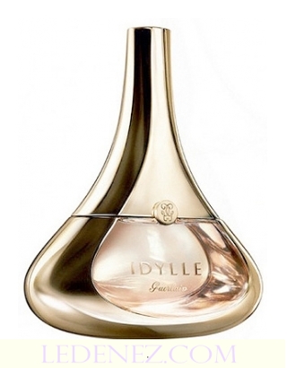 Idylle от Guerlain Герлен Идиль расскажет нам об удивительной, нежной и трагичной истории любви, которая воспевается писателями и поэтами в своих книгах. С самого начала аромат окутывает нас цветочной и нежной дымкой из лилии, сирени и пиона. Французский дизайнер создал этот золотой флакон в виде капельки слезы.